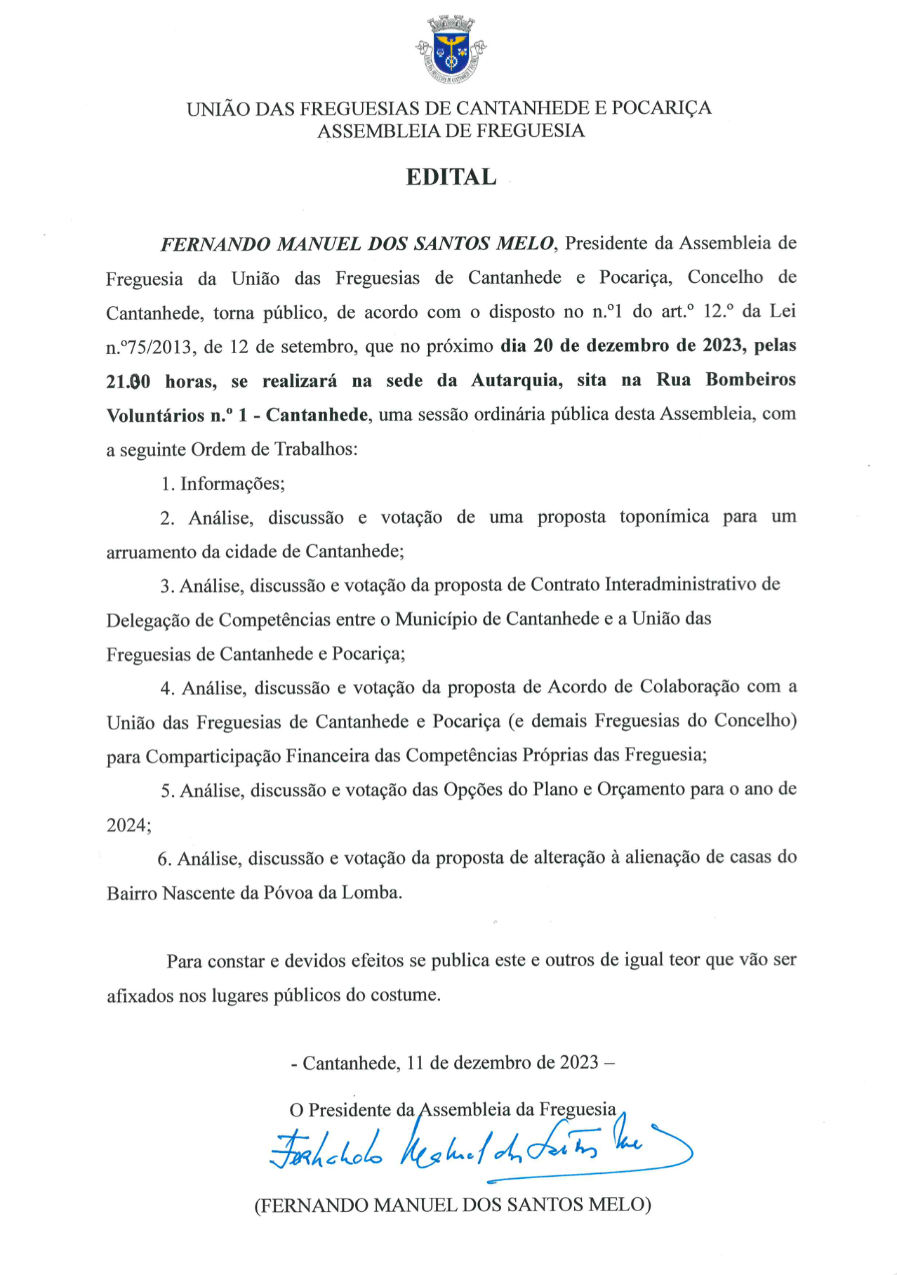 Edital - Sessão Ordinária da Assembleia de Fr...