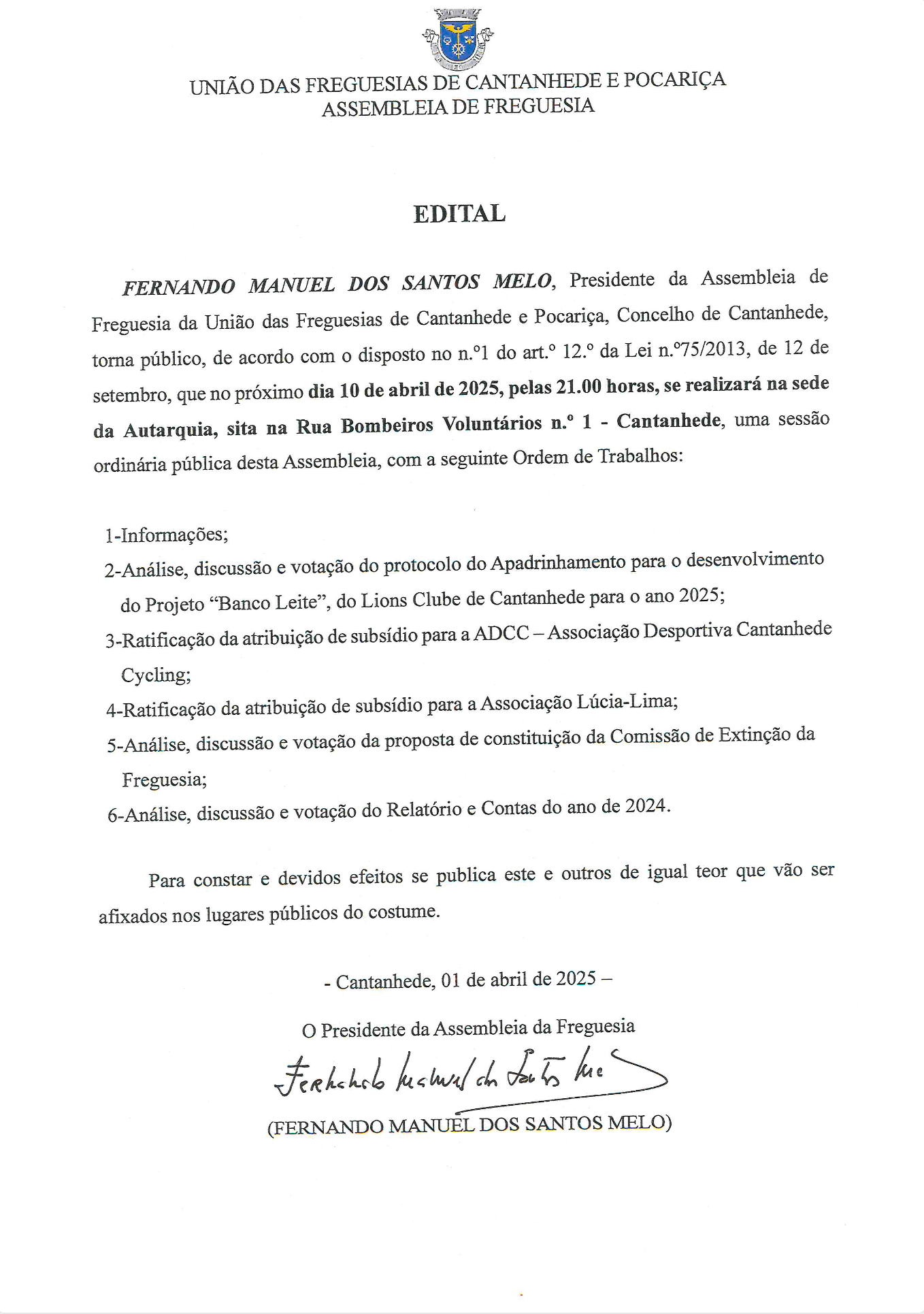 Edital - Sessão Ordinária da Assembleia de Fr...