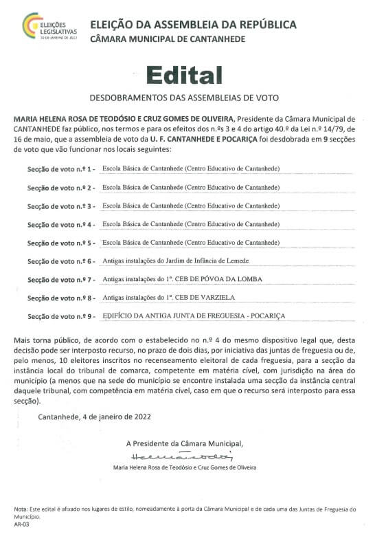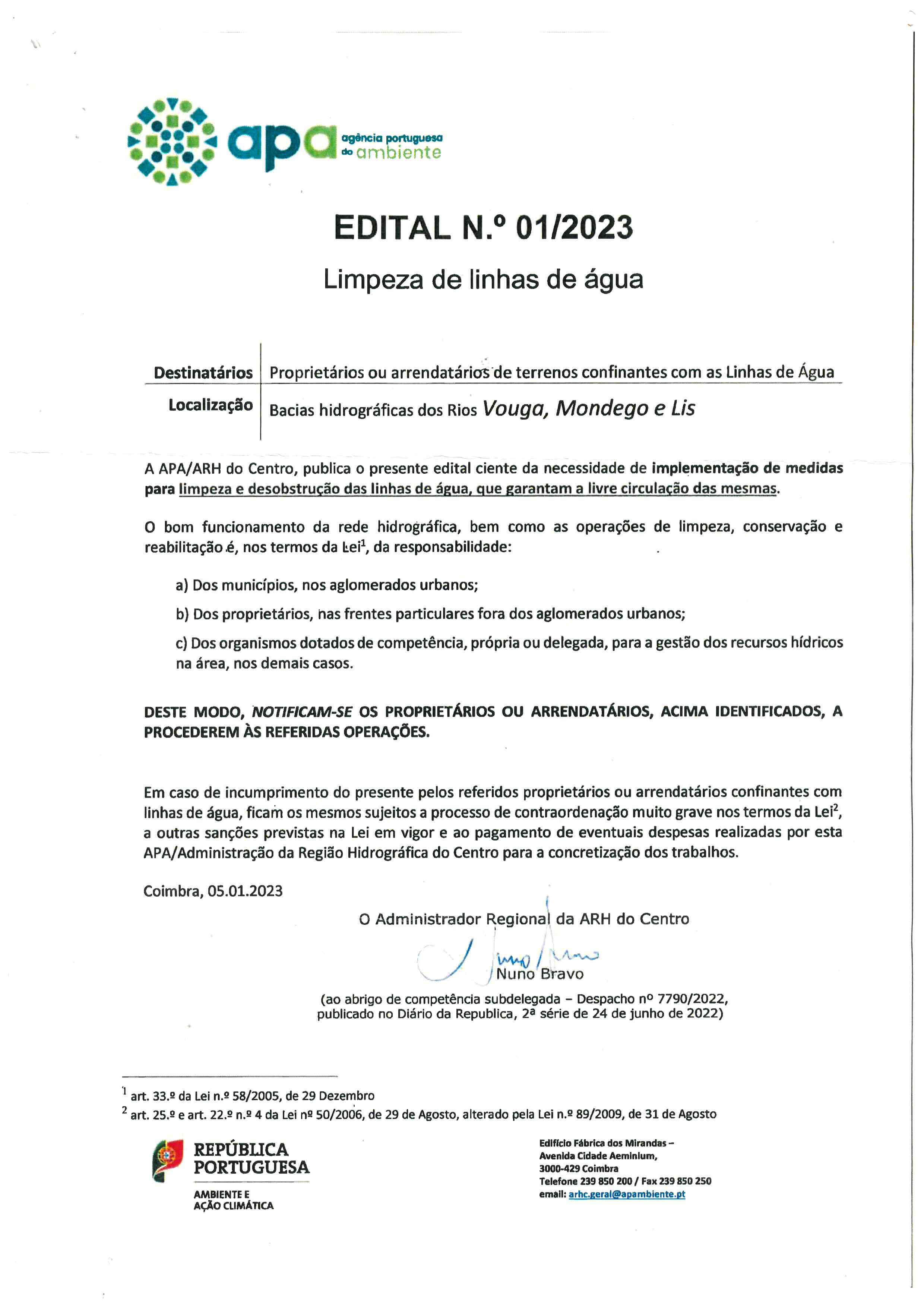 Mais se informa que a execução dos trabalhos por parte da IP S.A. poderá ser acompanhada por Forças de Segurança, de modo a garantir-se o seu total cumprimento, conforme previsto na legislação em vigor. Poderá ser obtida informação mais detalhada sobre os locais e datas de intervenção junto da IP, através do Centro Operacional Centro Norte, com sede em Estrada da Chapeleira, 3040-583 Antanhol, Tel. (+351) 239 794 500, ou da Câmara Municipal de Cantanhede, Junta de Freguesia de Febres, Junta de Freguesia de São Caetano, União de Freguesias de Cantanhede e Pocariça e Junta de Freguesia de Mira.