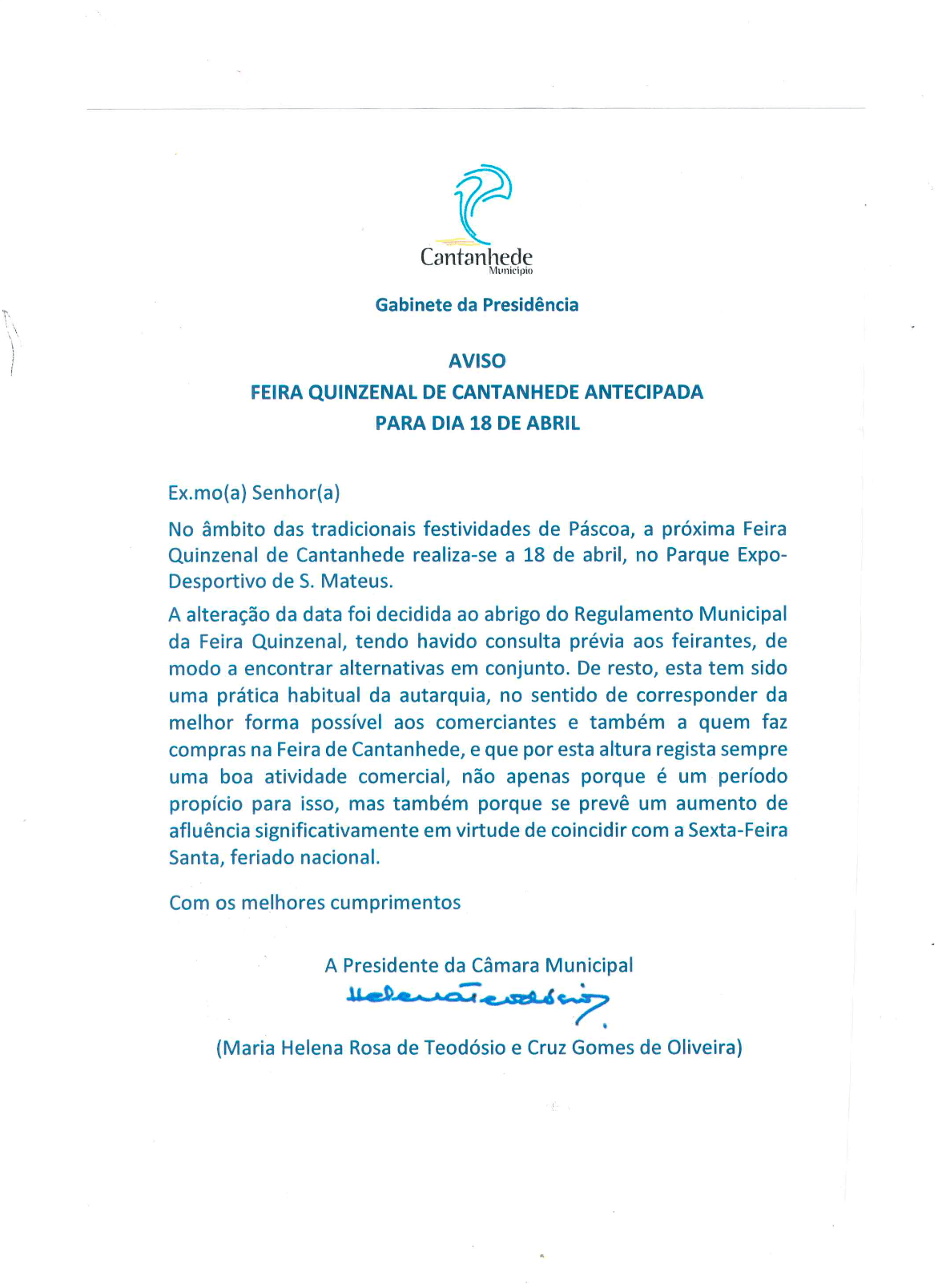 Aviso CM Cantanhede - Feira Quinzenal de Cant...
