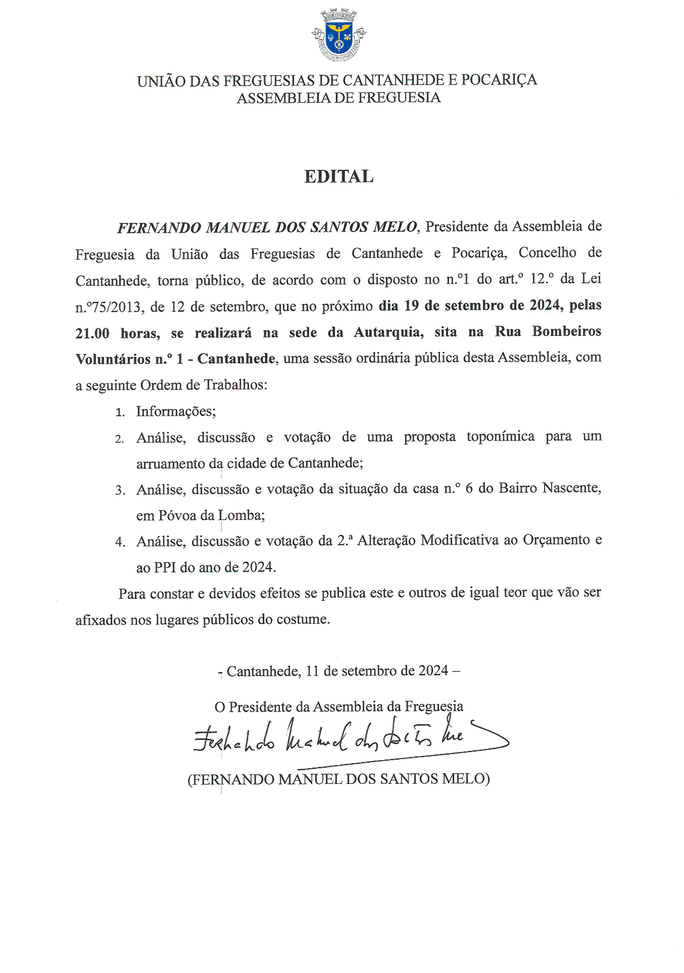 Ficam assim notificados, através do presentel, todos os proprietários confinantes com linhas de água para, na testada das suas propriedades, procederem à sua limpeza e desobstrução.