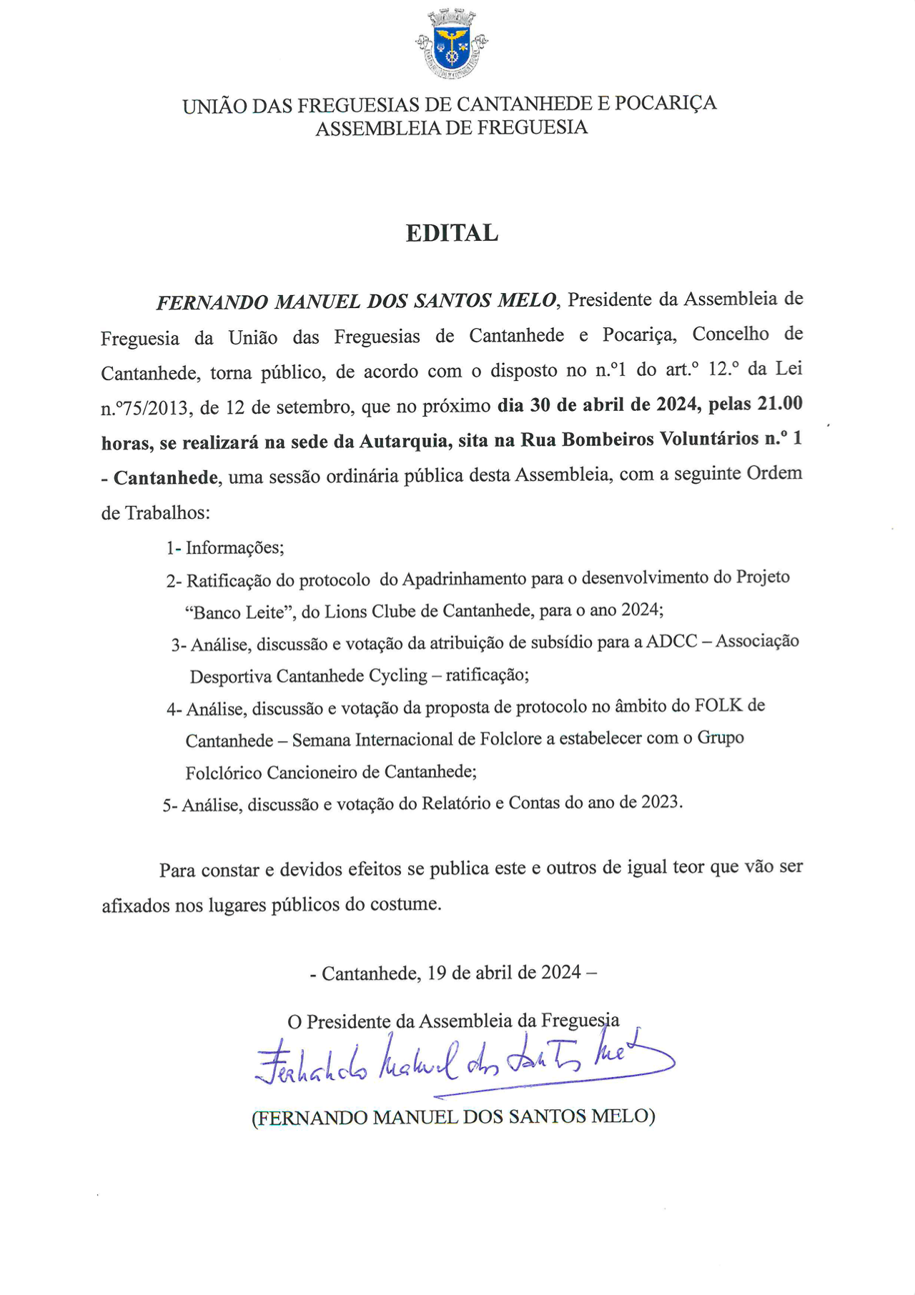Edital - Sessão Ordinária da Assembleia de Fr...