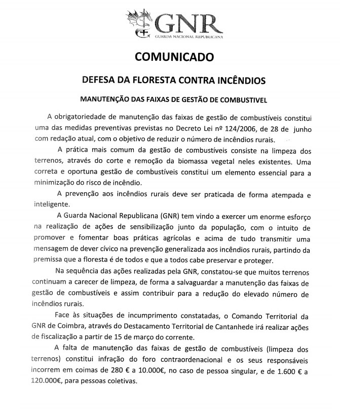 Comunicado GNR - Defesa da floresta contra in...