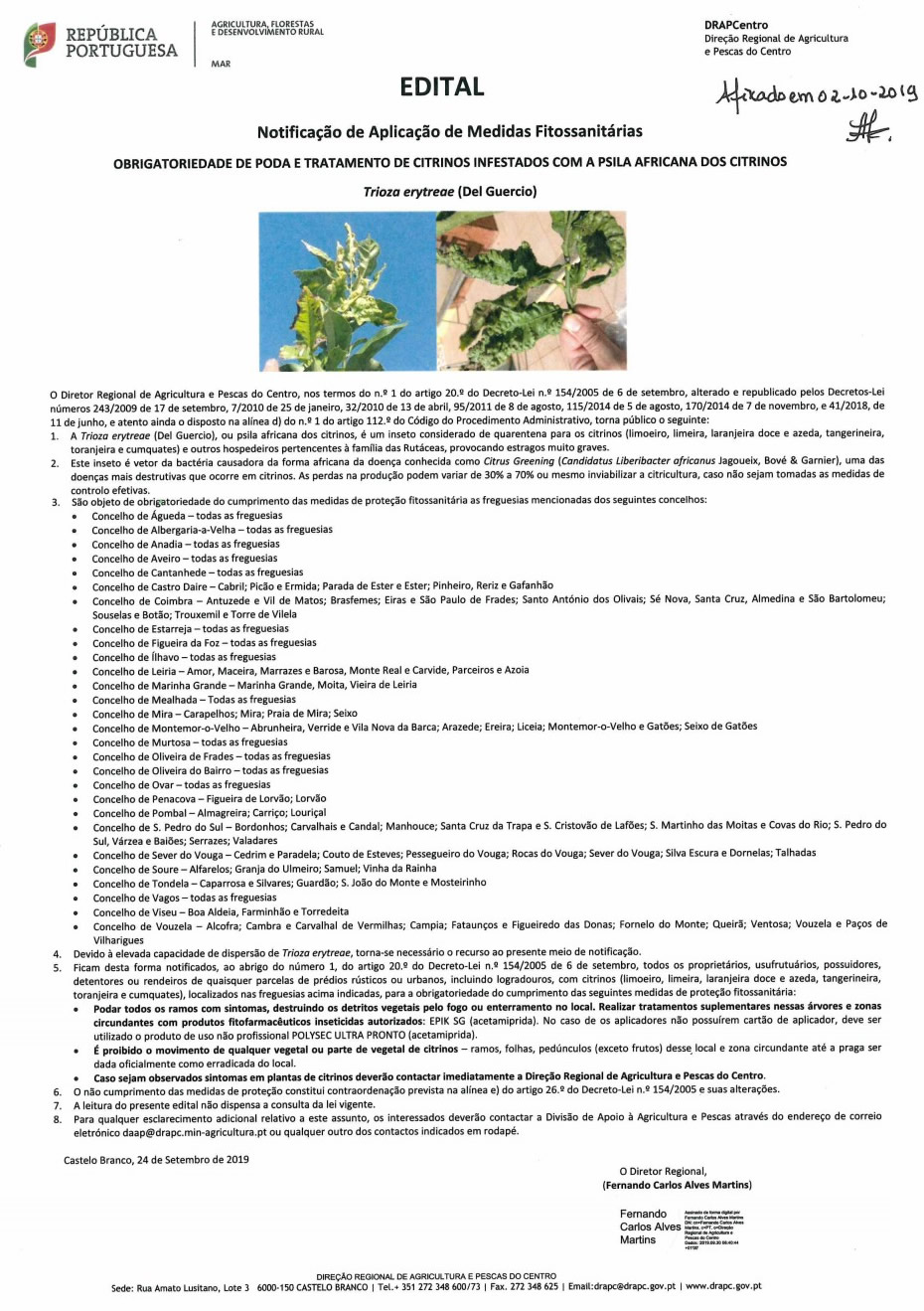 Notificação da aplicação de medidas fitossani...