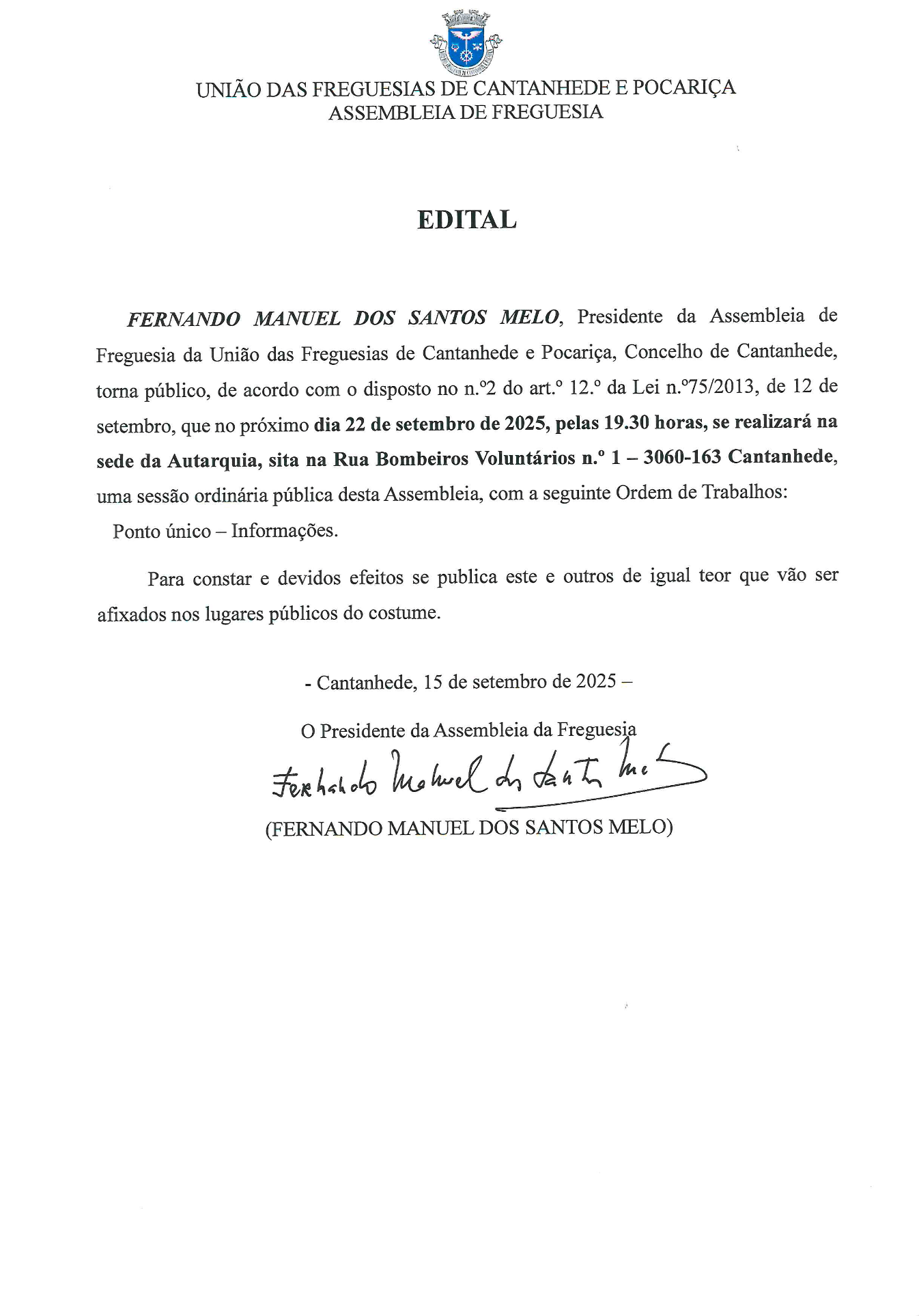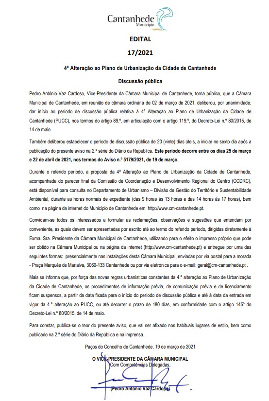 Edital - 4ª alteração ao plano de urbanização da cidade de Cantanhede