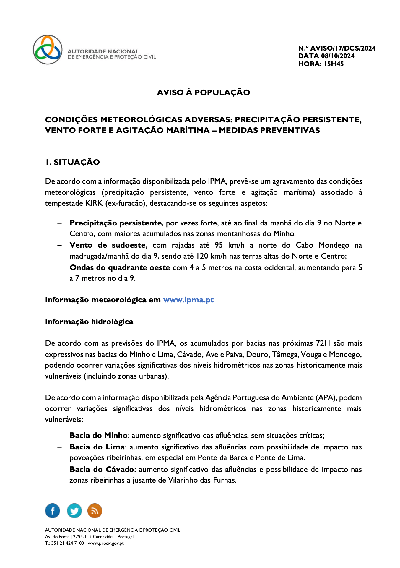 Aviso à População n.º 17/DCS/2024 – Condições...